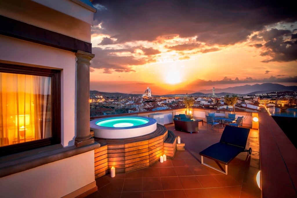 Il St. Regis Firenze. Si trova in un edificio storico progettato da Filippo Brunelleschi, riflette tutta l’eleganza e il fascino del Vecchio Mondo. Situato sulle rive del fiume Arno, con vista sul Ponte Vecchio, dista solo 1 km dalla cattedrale della città. Mobili in stile fiorentino e bagni in marmo sono semplicemente stupendi.